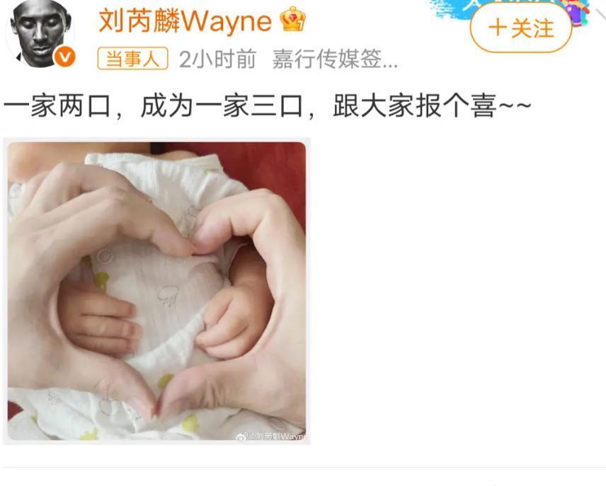 就今年七月,刘芮麟在自己的社交账号官宣了自己生孩子的消息。